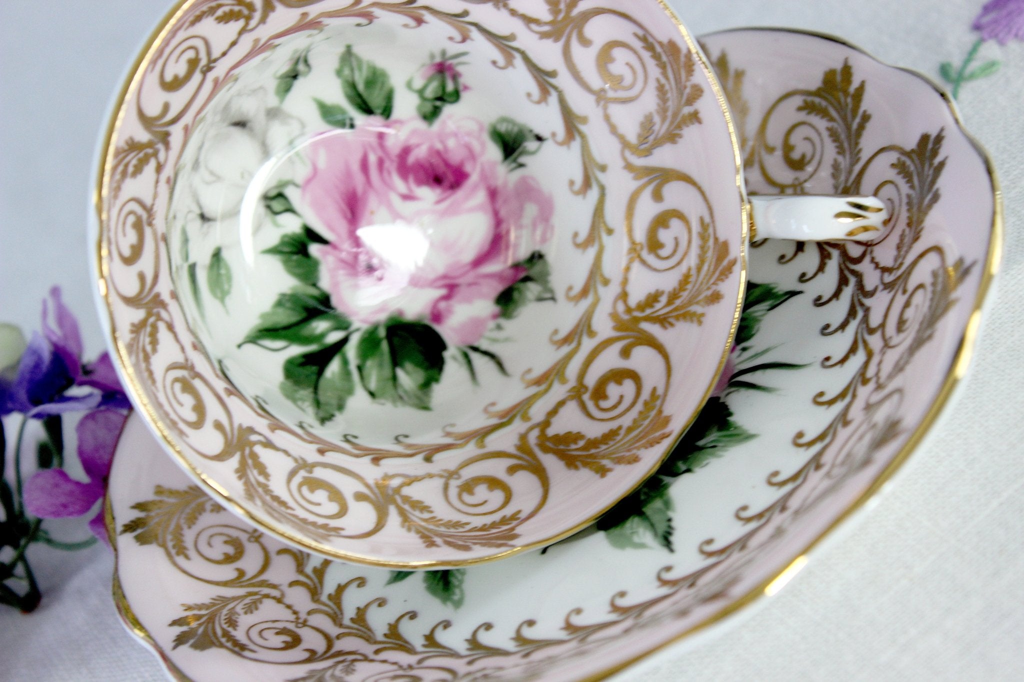 EB Foley Cup & Saucer | Wide Teacup | Pink and Gold J-18777