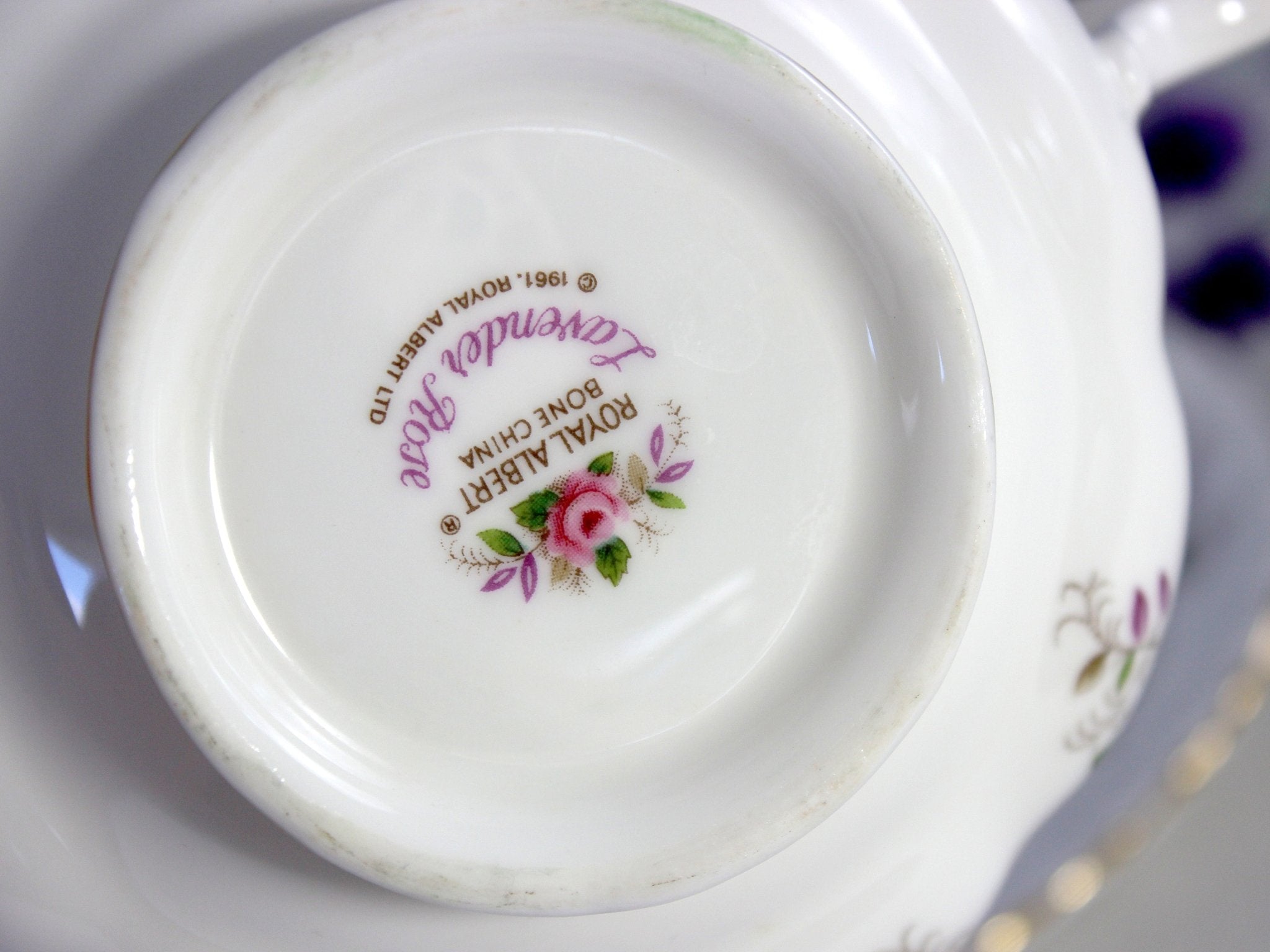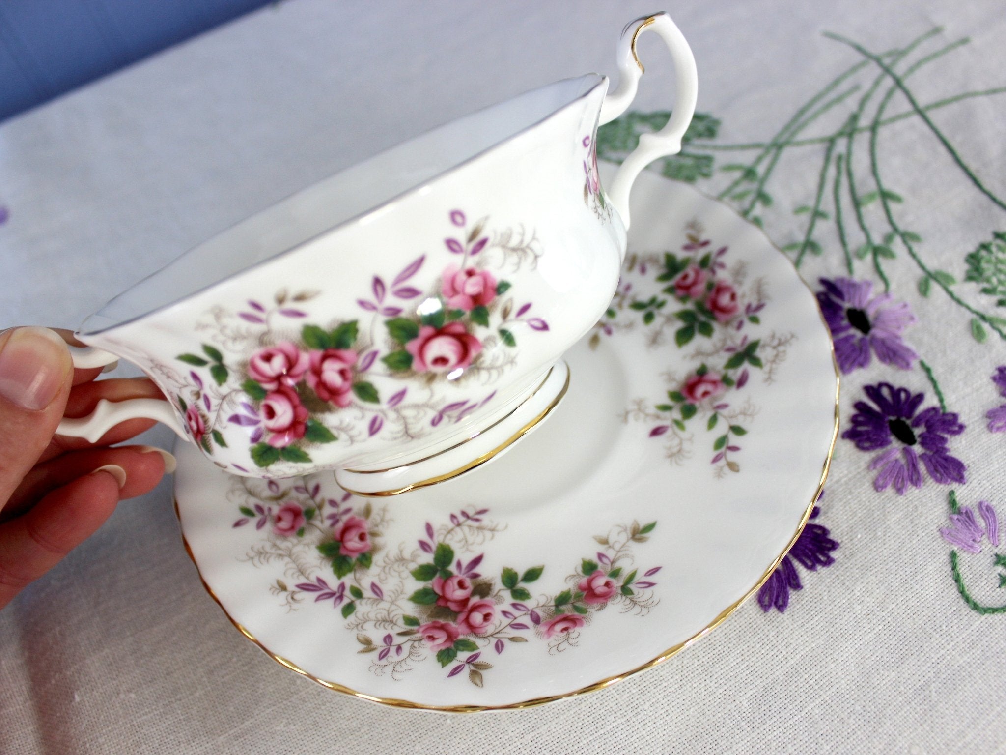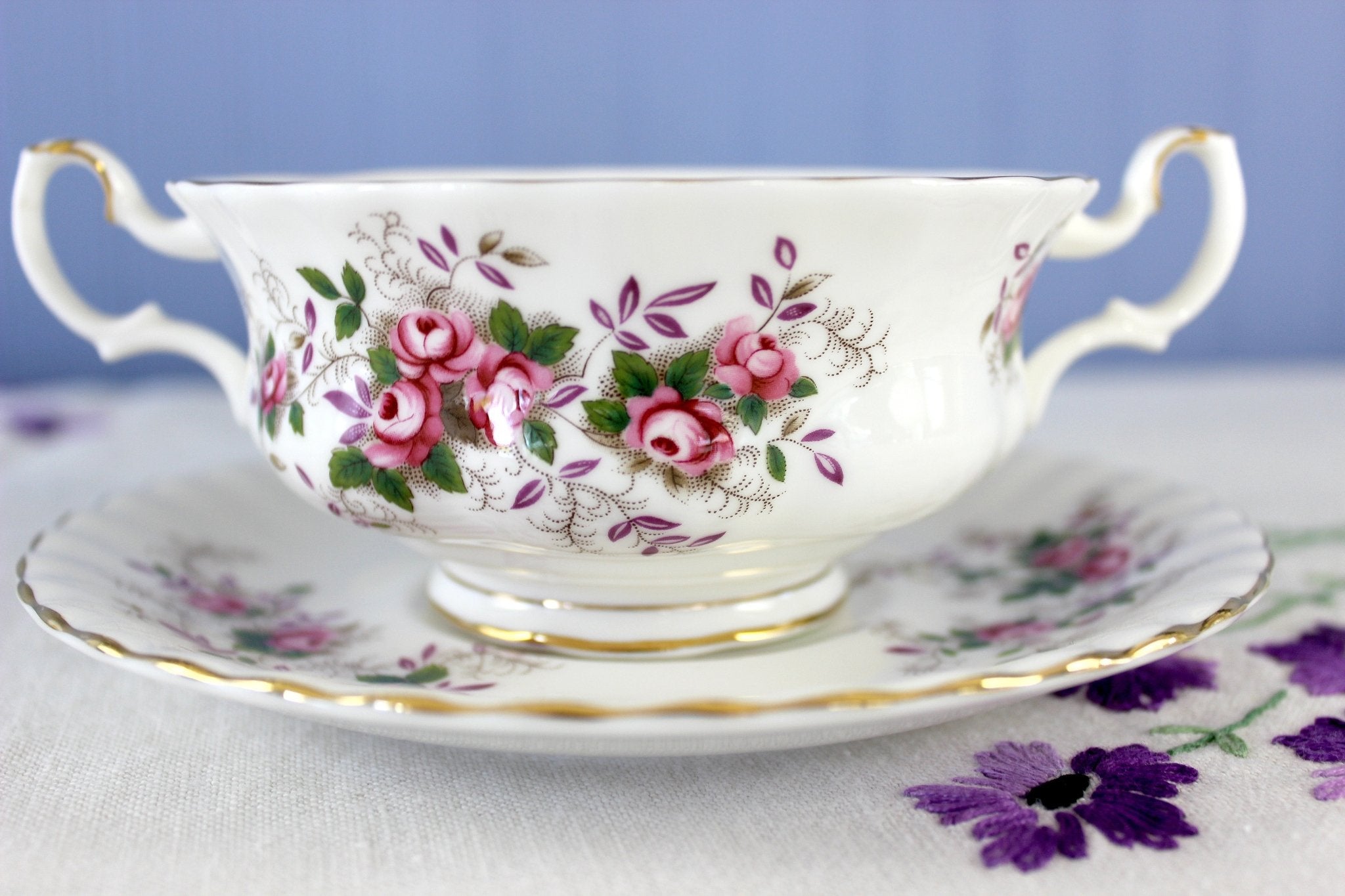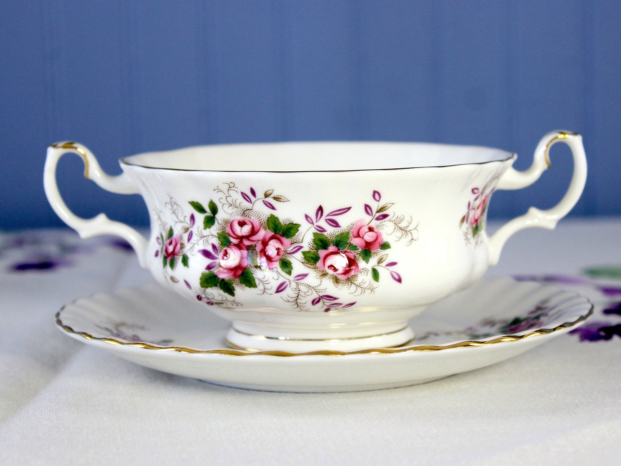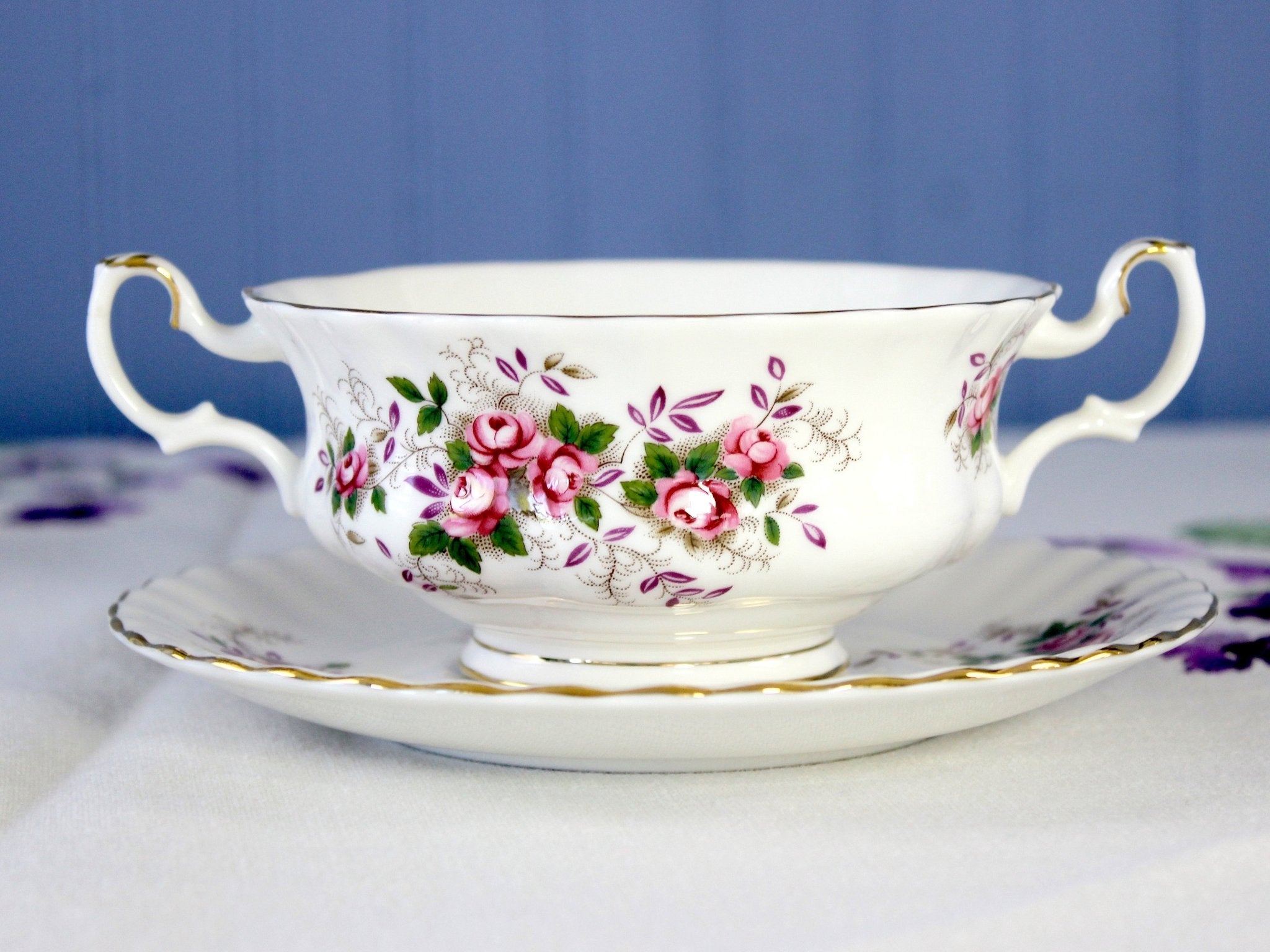 Royal Albert Boullion Cup and Saucer, Lavender Rose, 2 Handled Cream Soup Cup -J