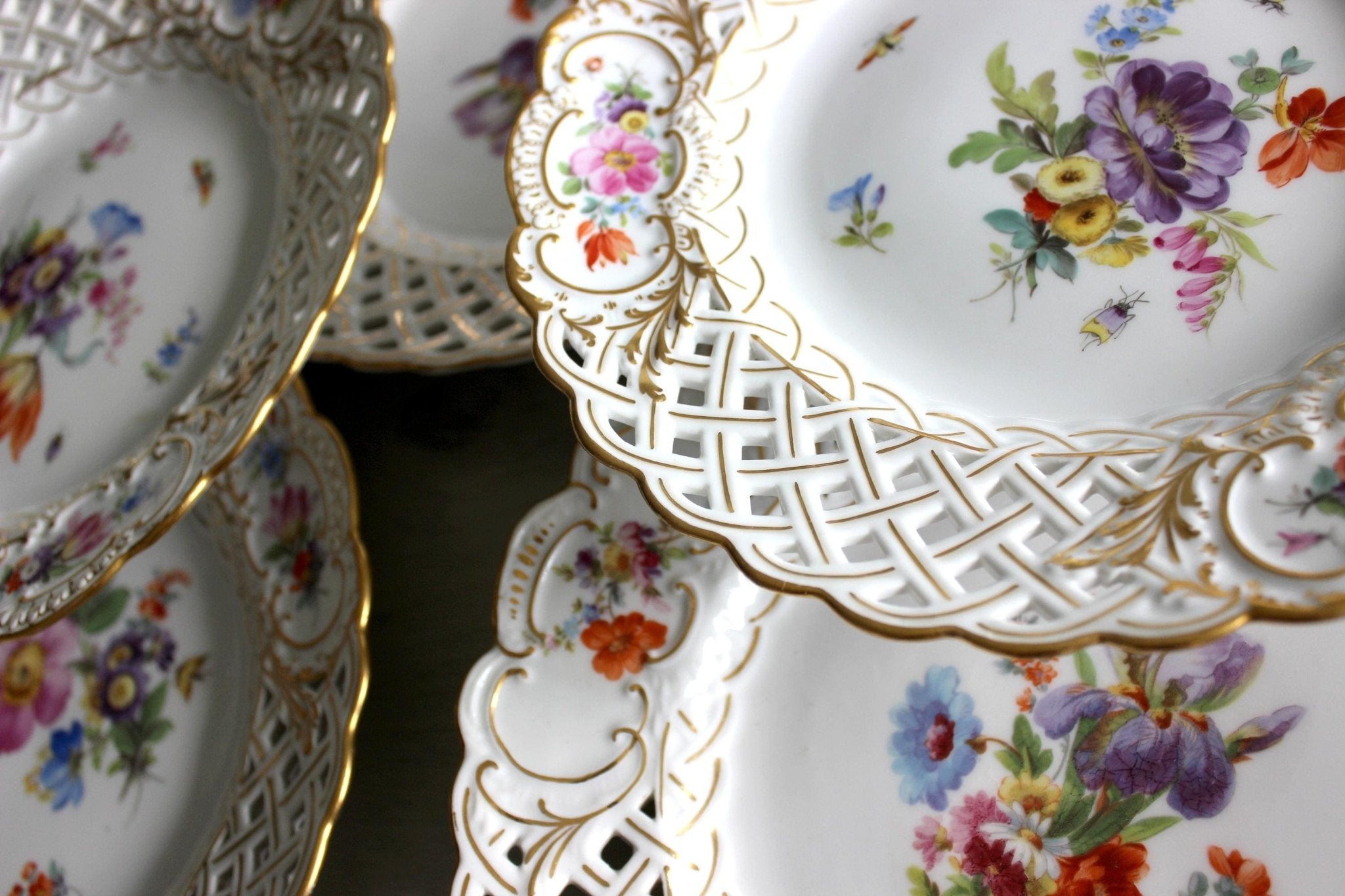 Seven Antique Meissen Germany Porcelain Hand Painted Reticulated Plates 18743