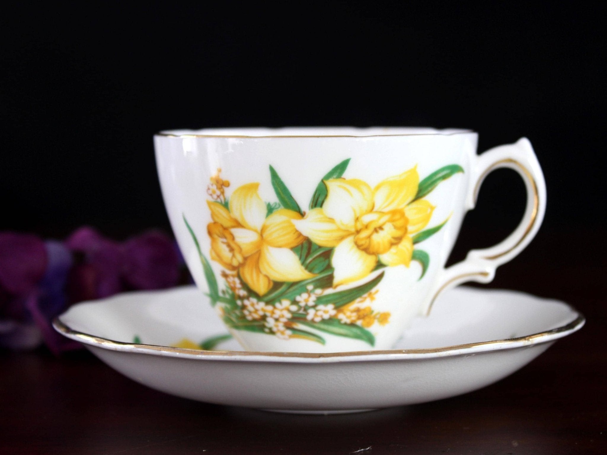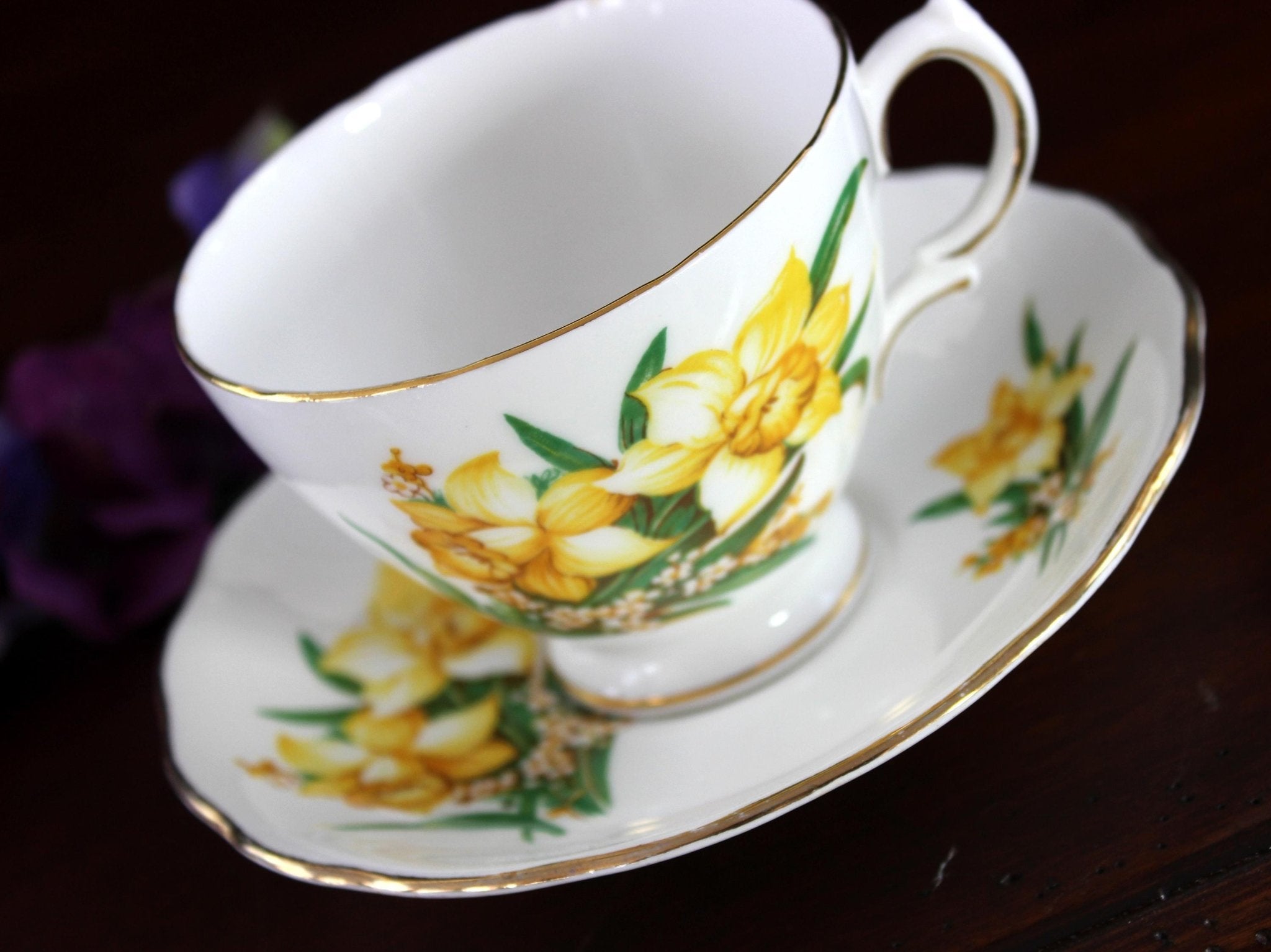 Daffodil Teacup | Made in England | Royal Vale.. Brew a cup of happiness with this charming, Made in England teacup. Cheers to making everyday moments a little more magical!