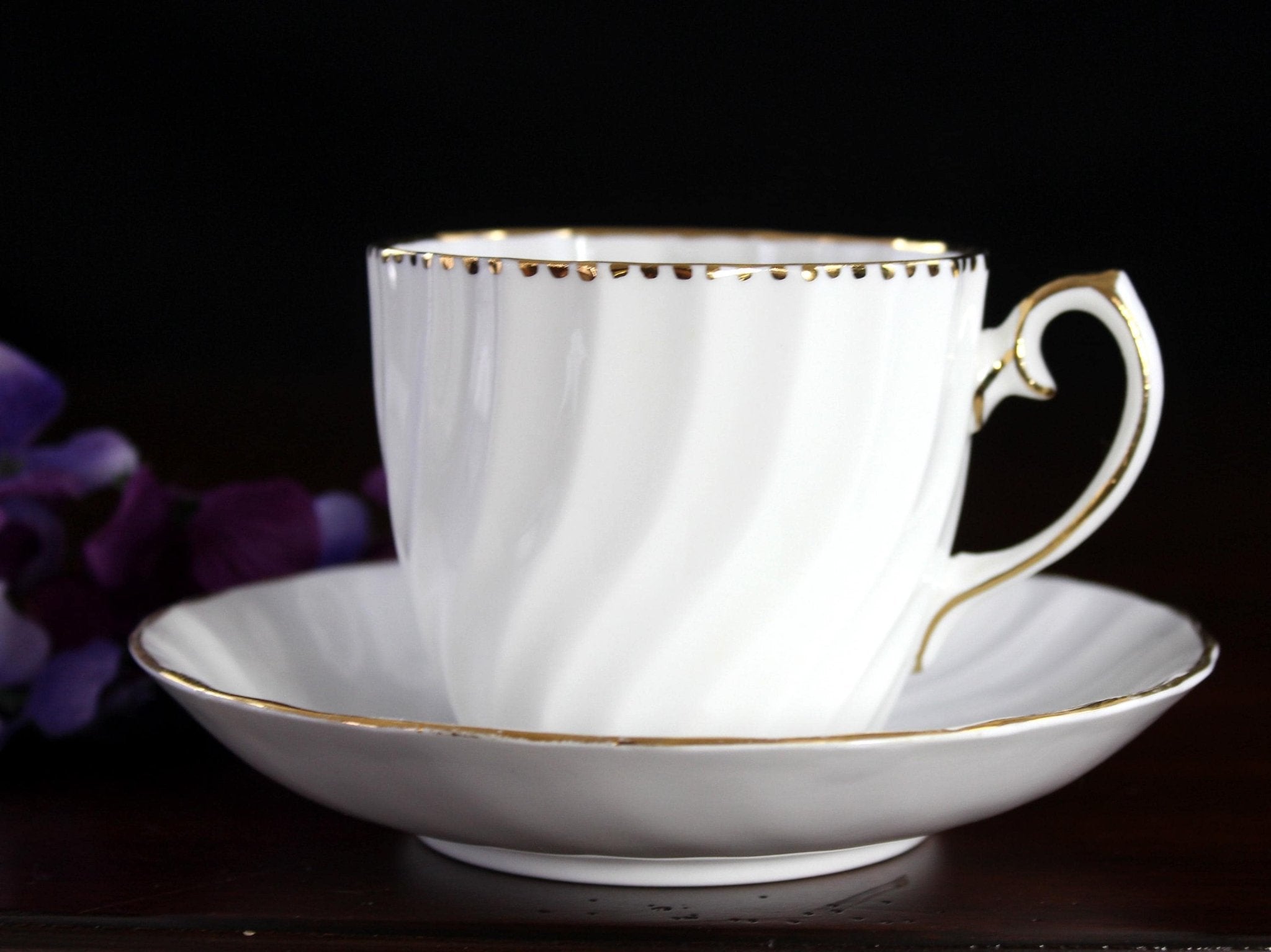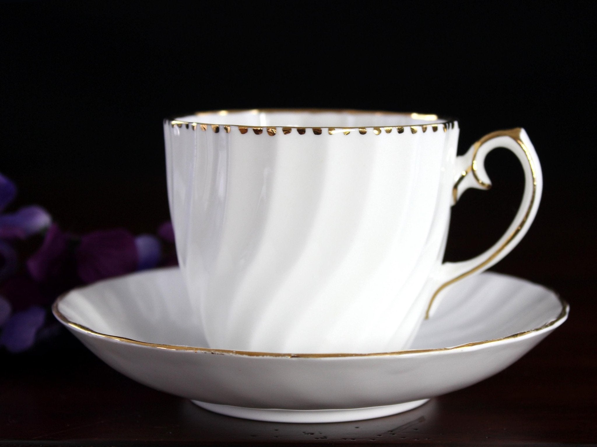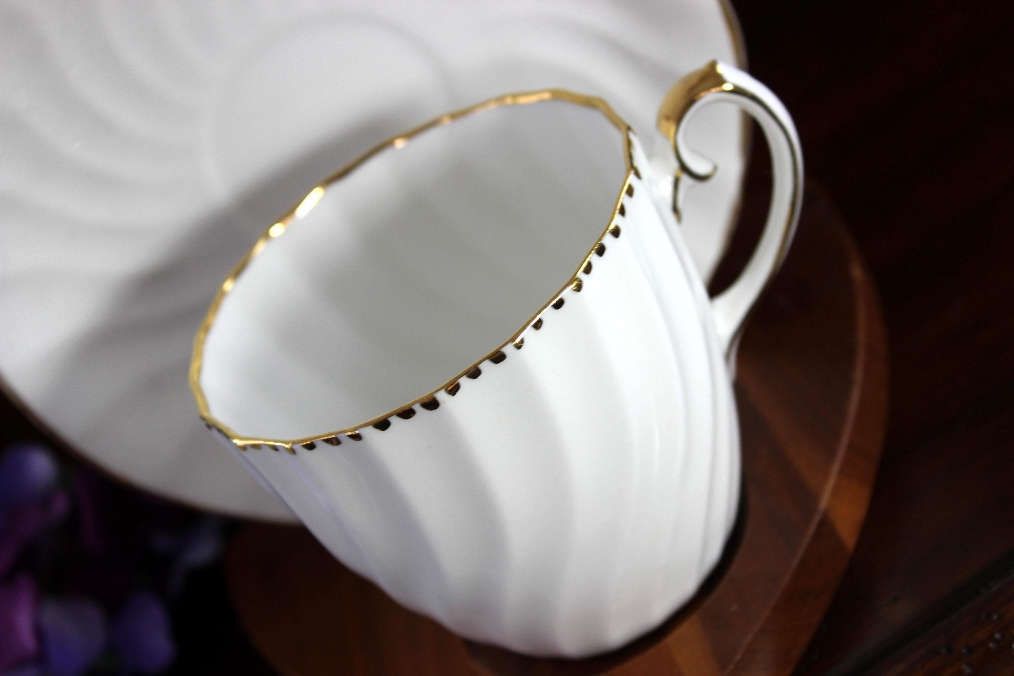 Gladstone White and Gold Teacup and Saucer | Old Grecian Flute 18753