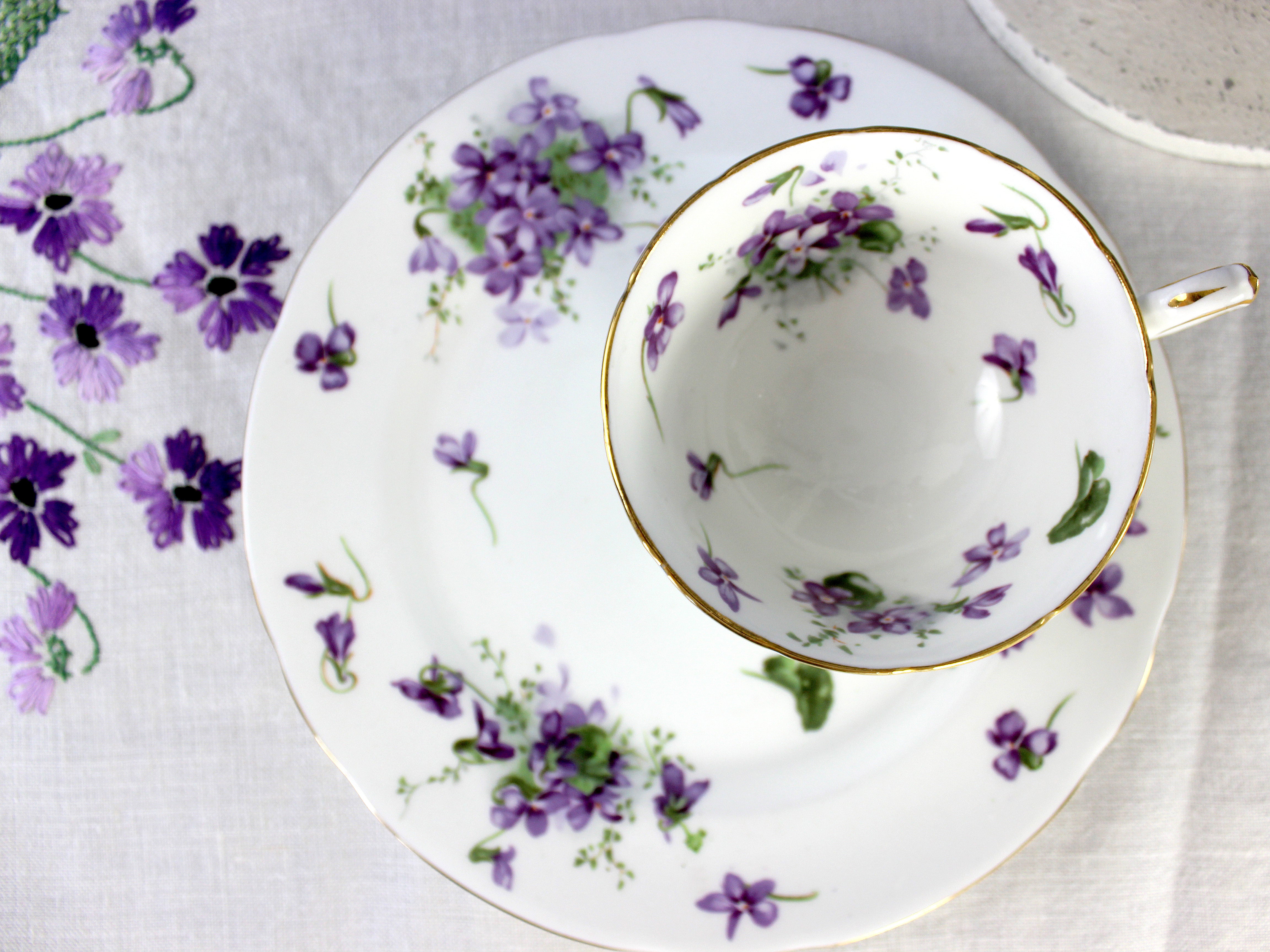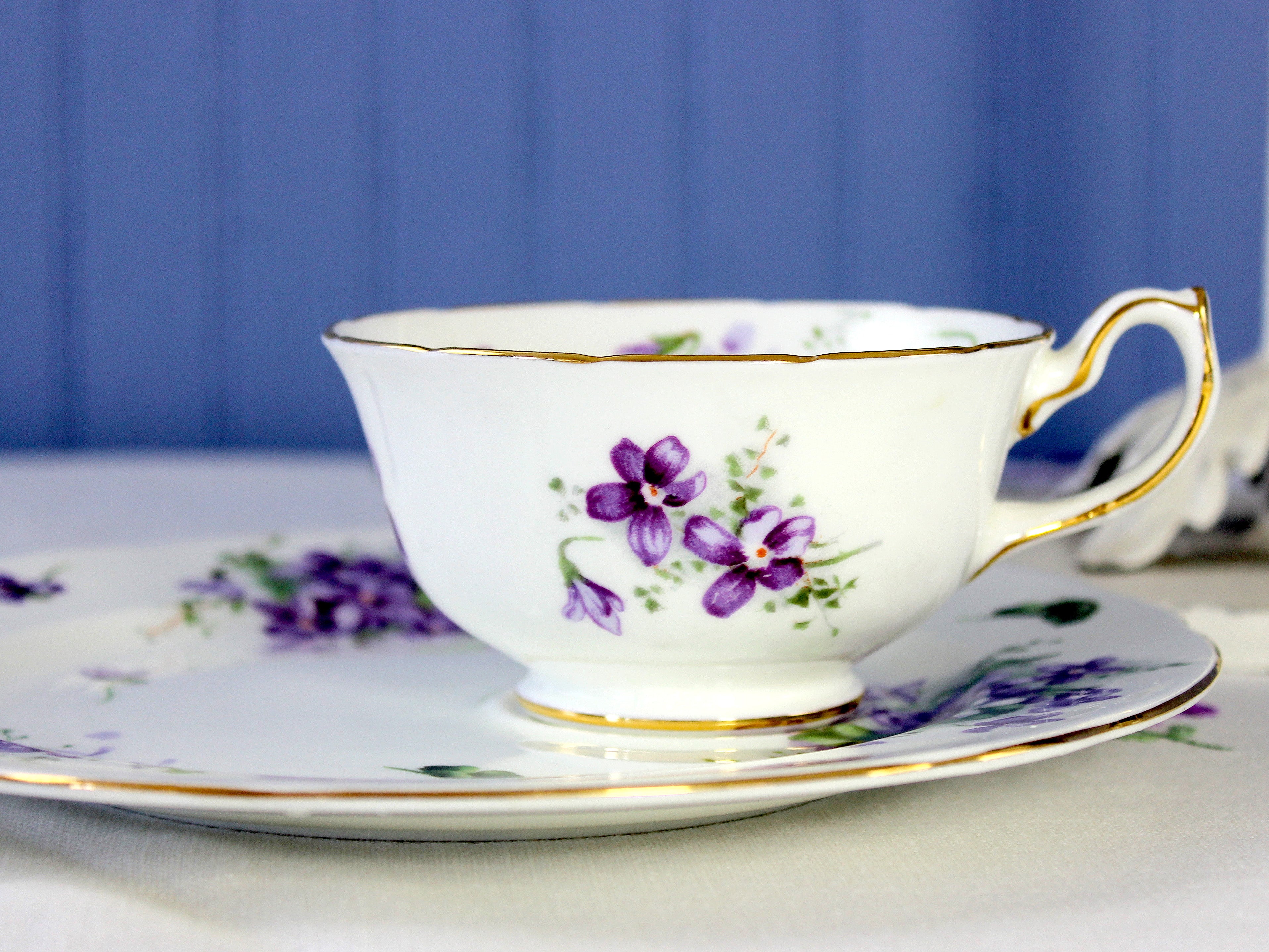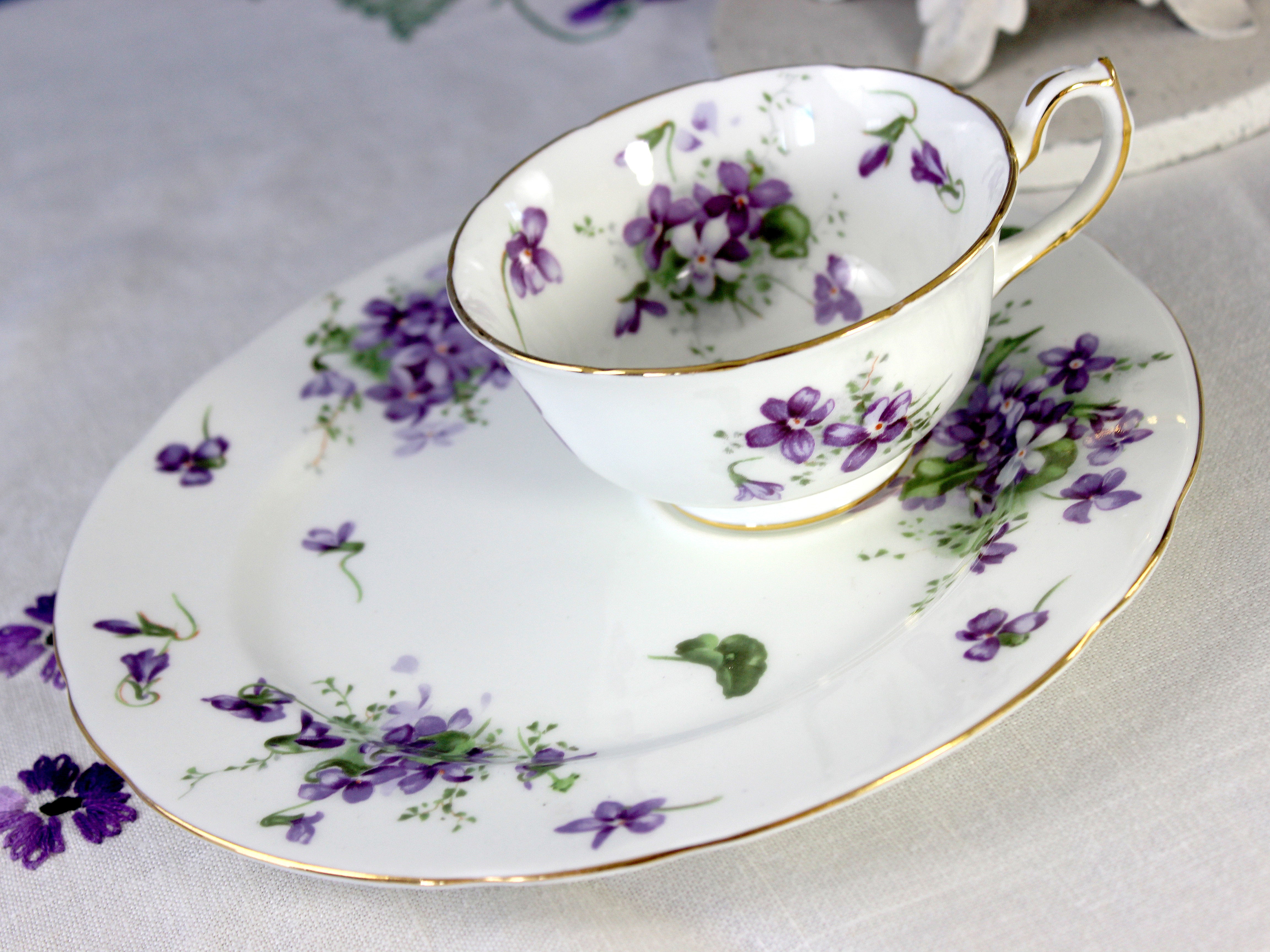 Hammersley Teacup and Snack Plate, Violets Tea Cup, Made in England.