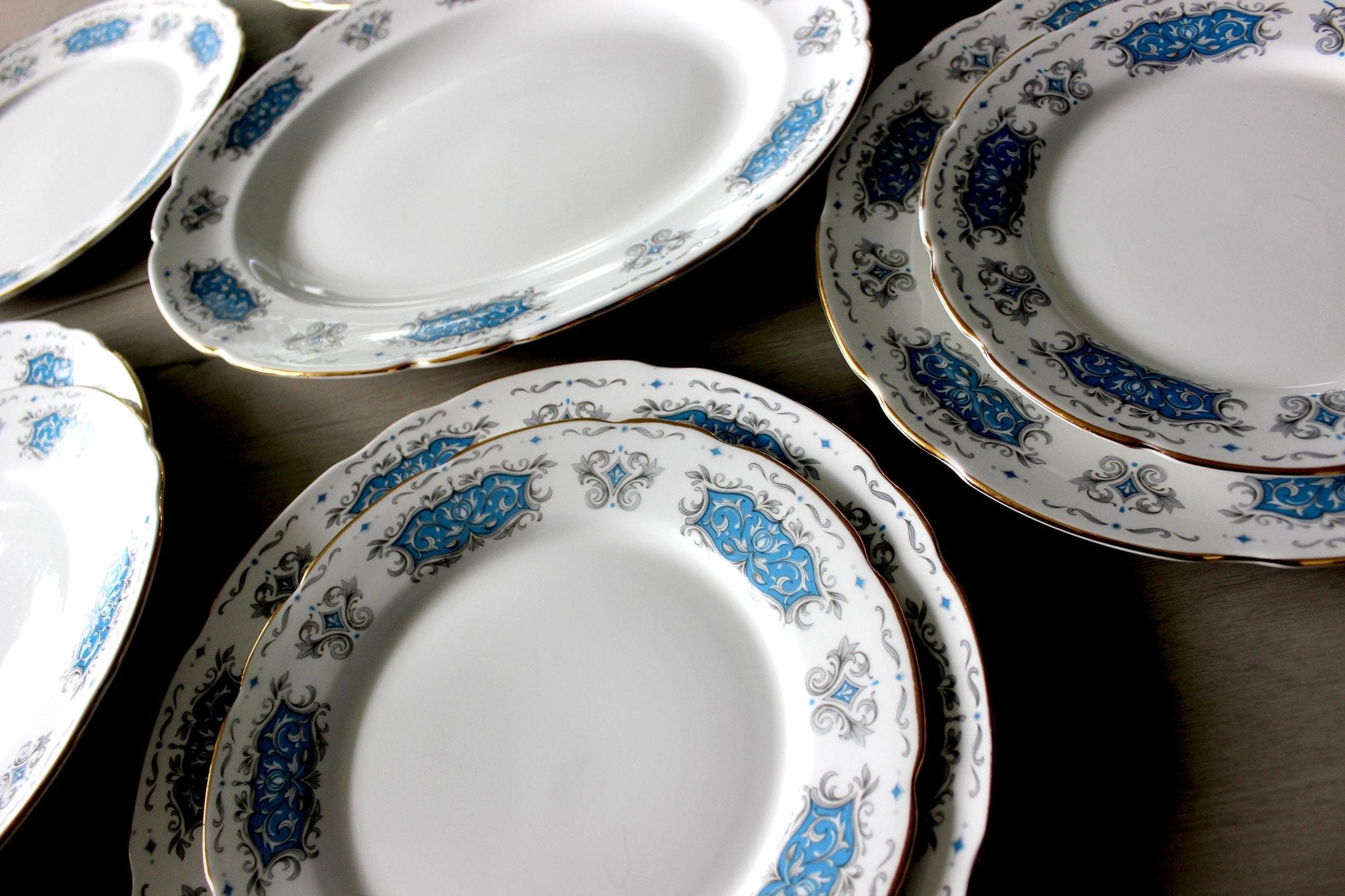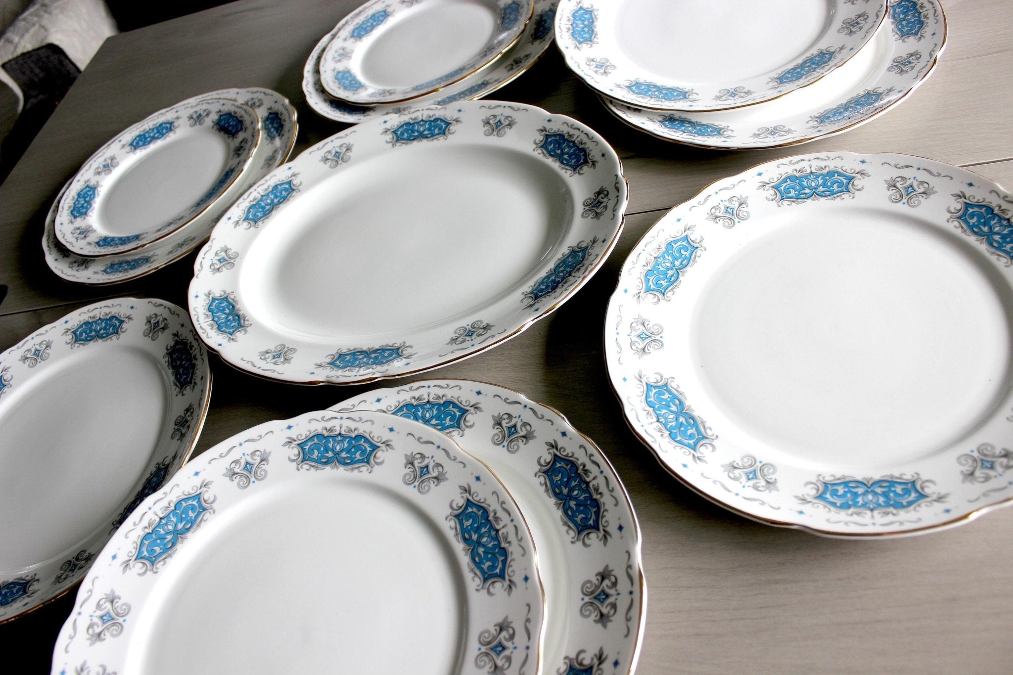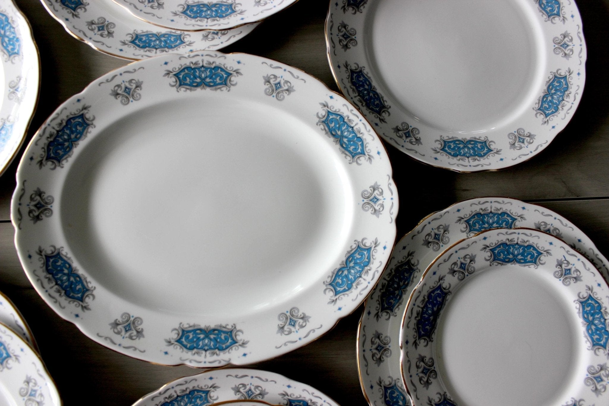 8 Dinner Plates, One Platter, 2 Side Plates - Runnymede, Royal Stafford J-18795