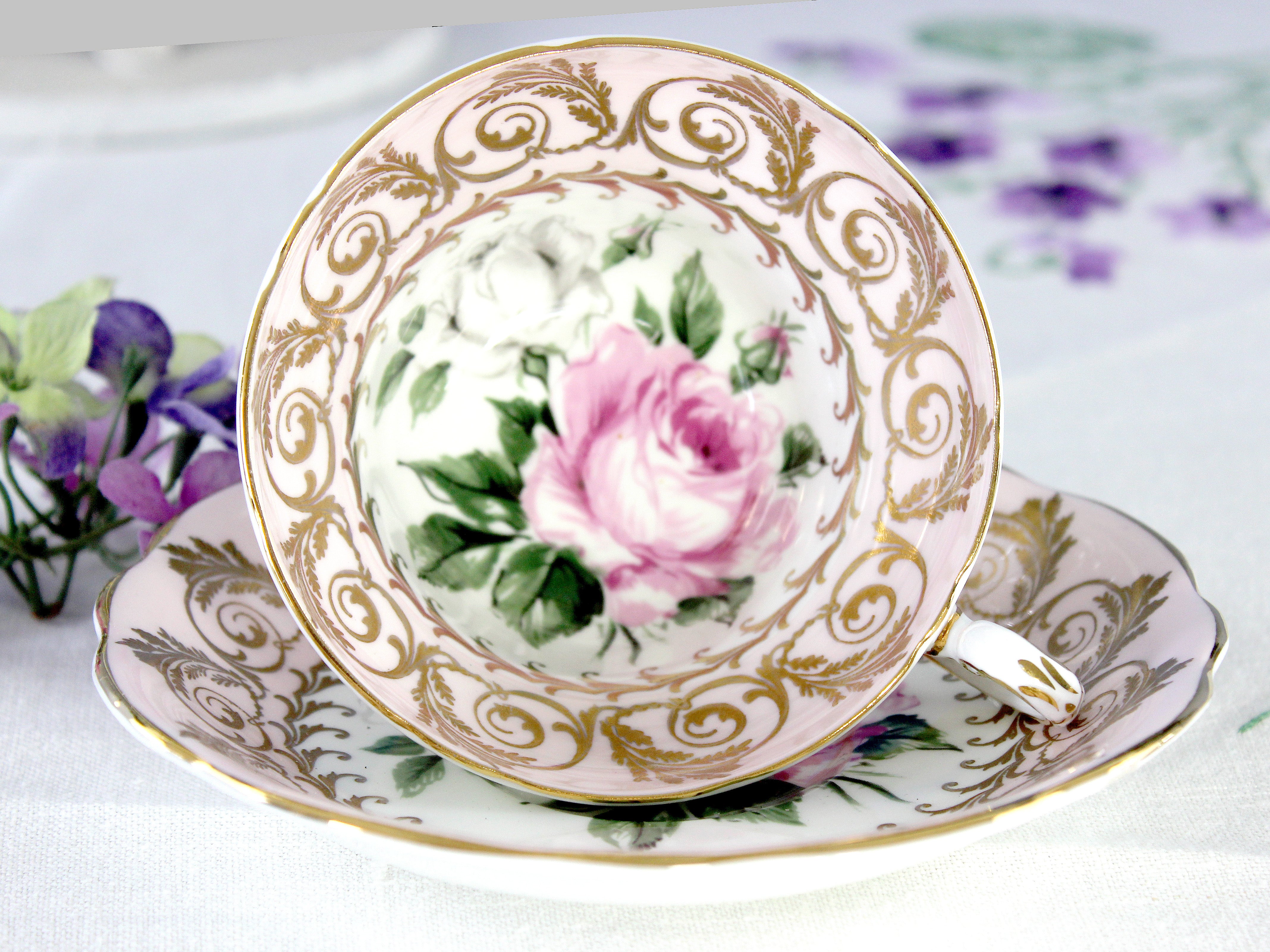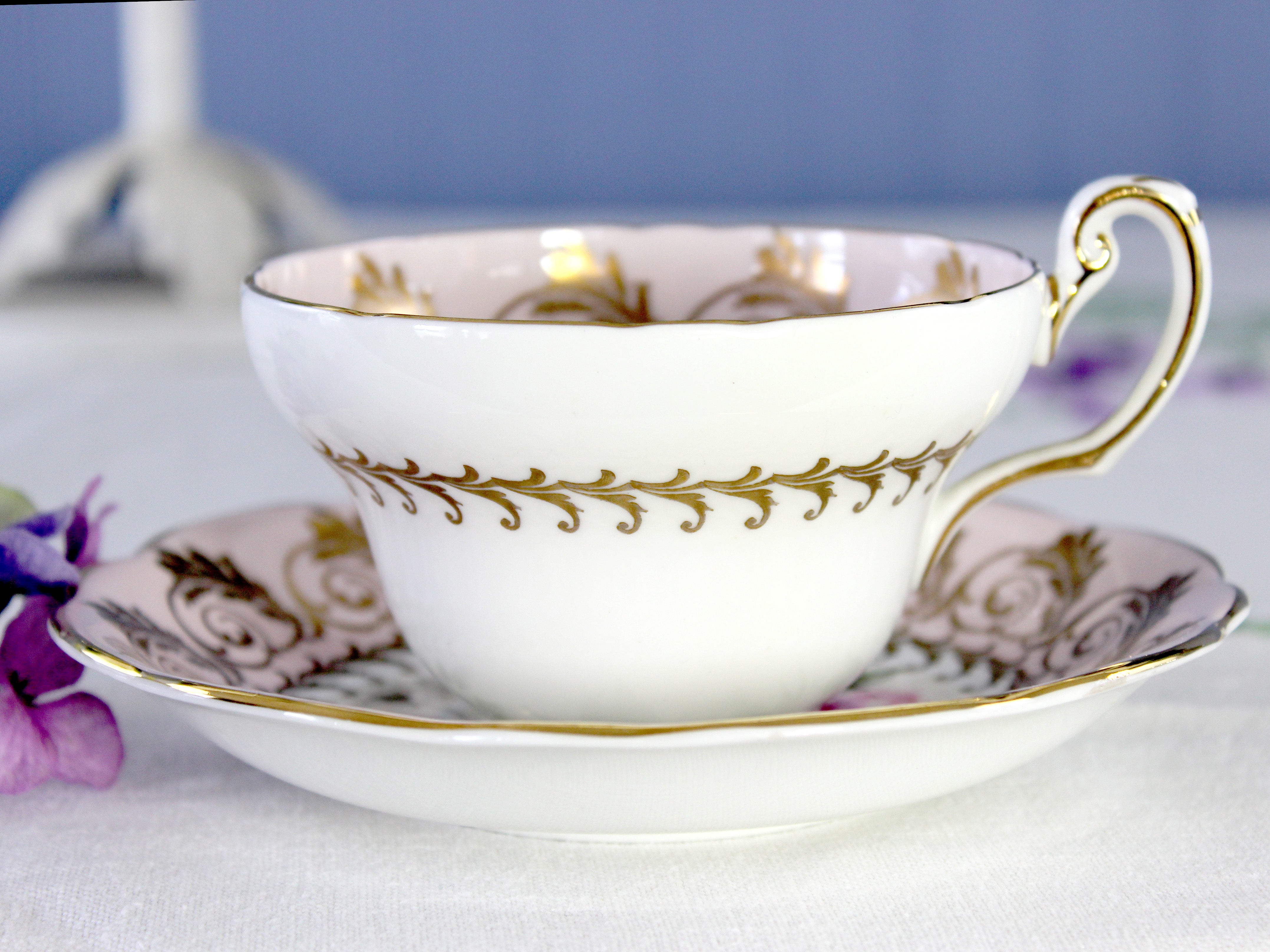 EB Foley Cup & Saucer | Wide Teacup | Pink and Gold J-18777