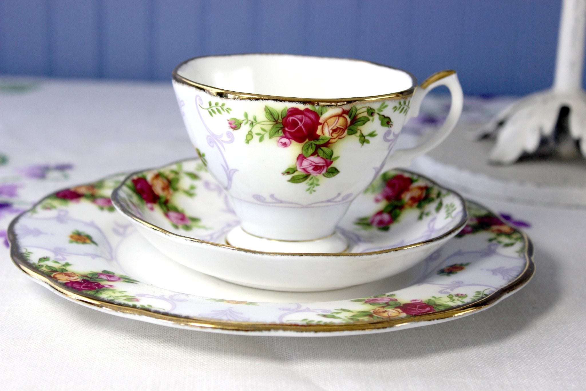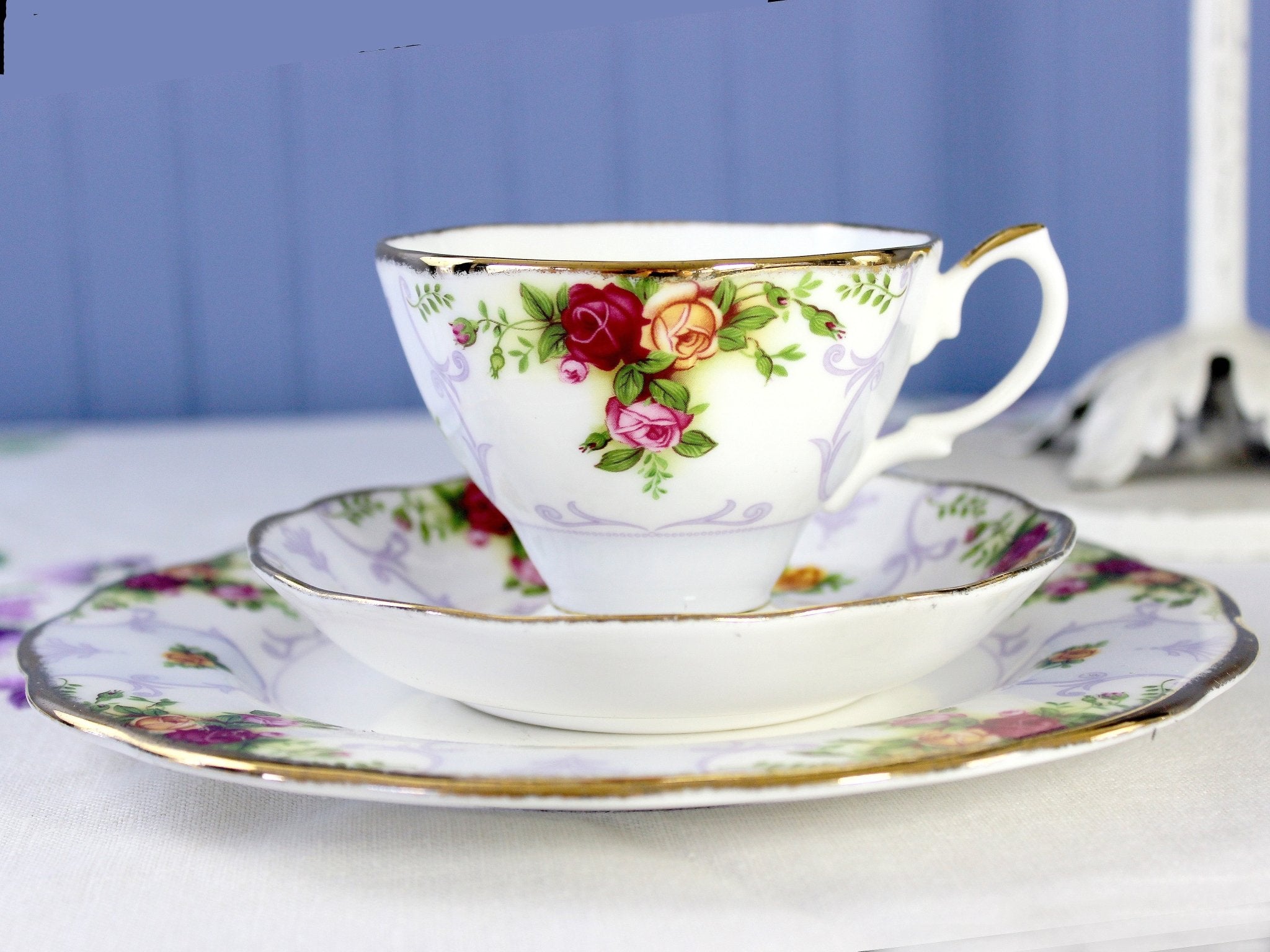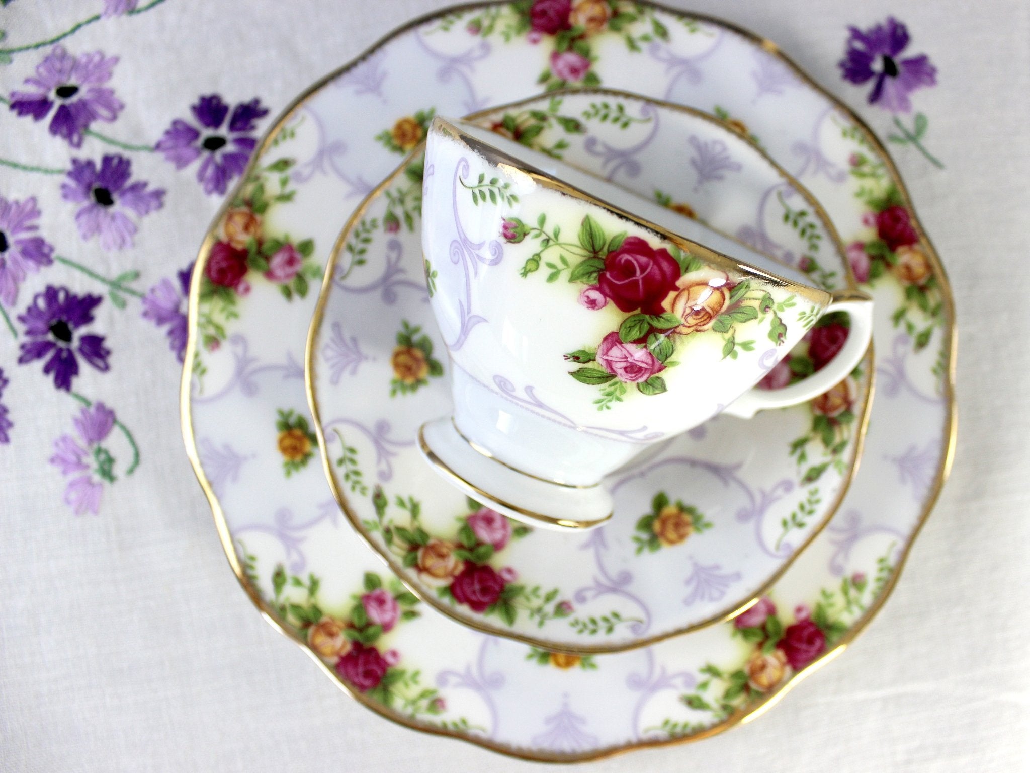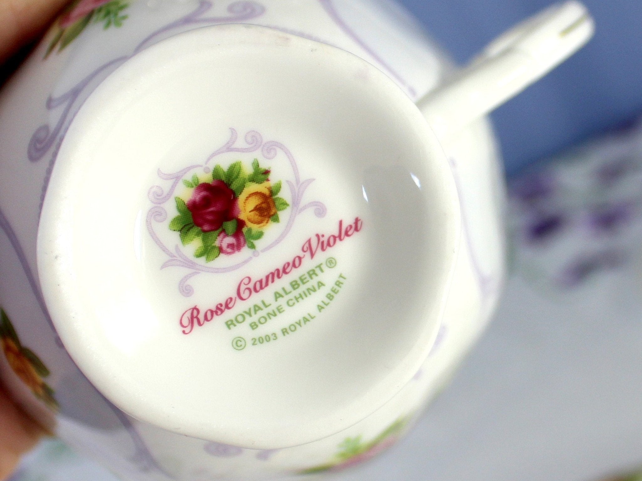 Royal Albert Tea Cup, Saucer & Side Plate, Rose Cameo Violet Teacup, English Bone China