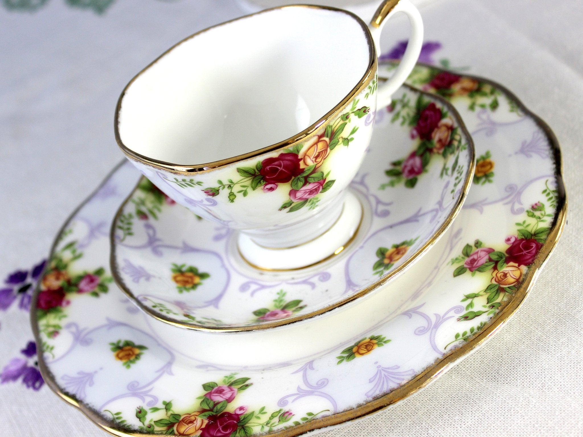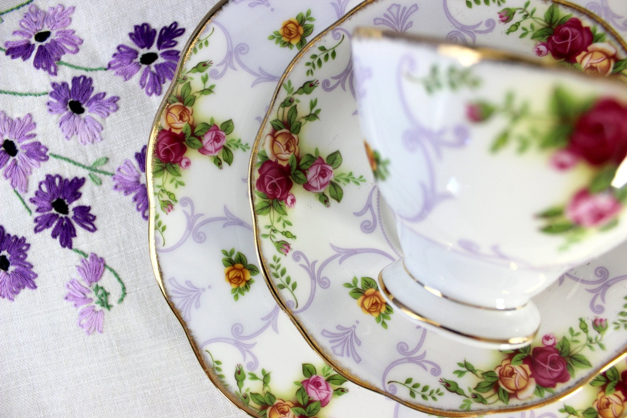 A super sweet, light violet set from the highly collectible Royal Albert Company