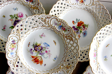 Seven x 8 Inch Antique Meissen Germany Porcelain Hand Painted Reticulated Plates - Collectible, One price for the lot!