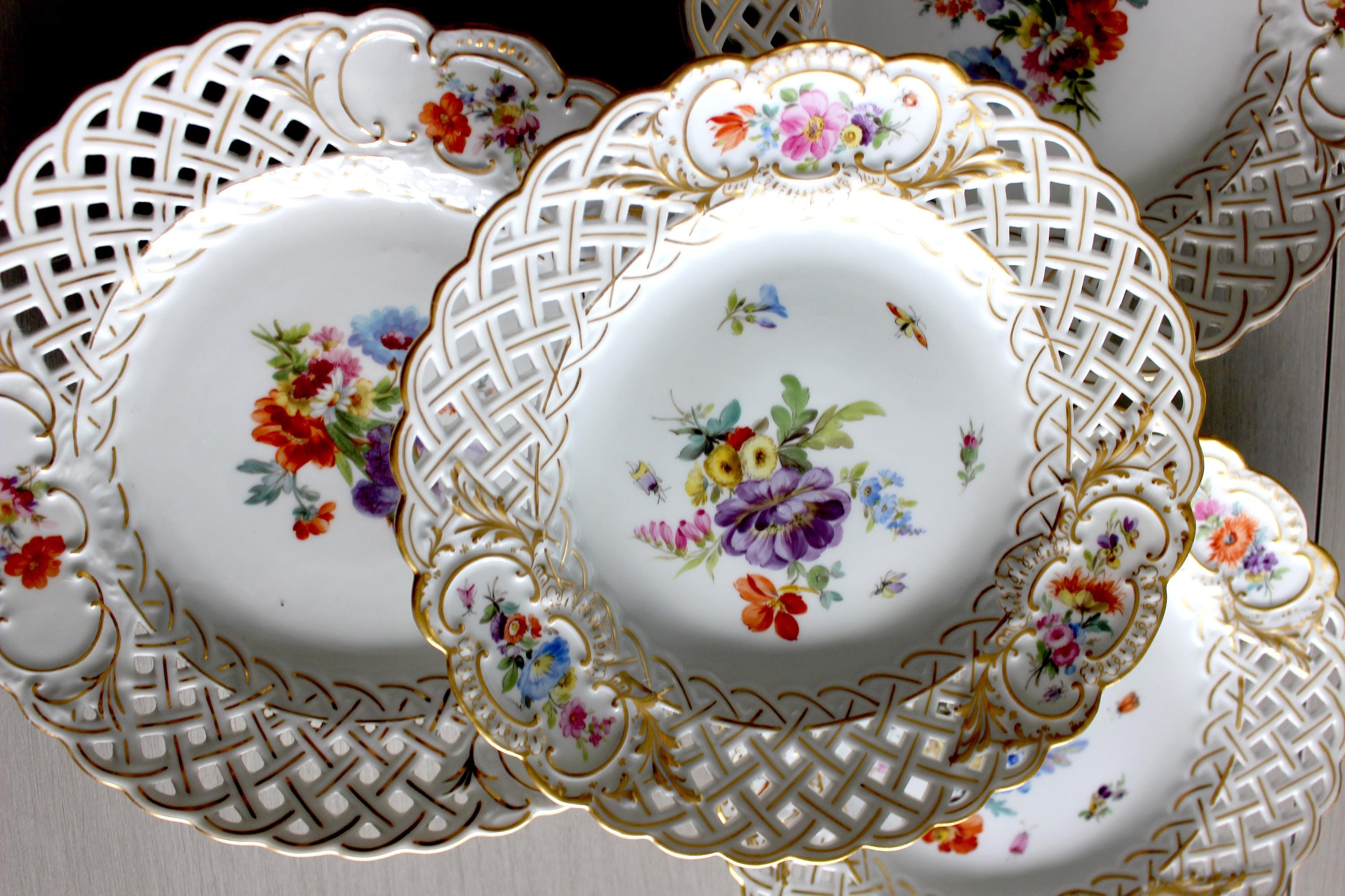 Seven Antique Meissen Germany Porcelain Hand Painted Reticulated Plates 18743