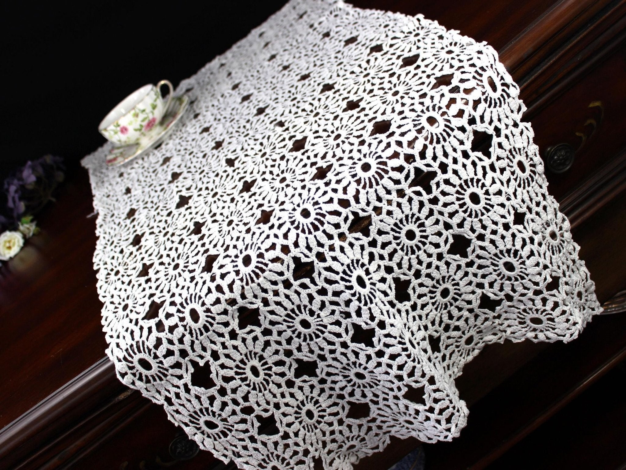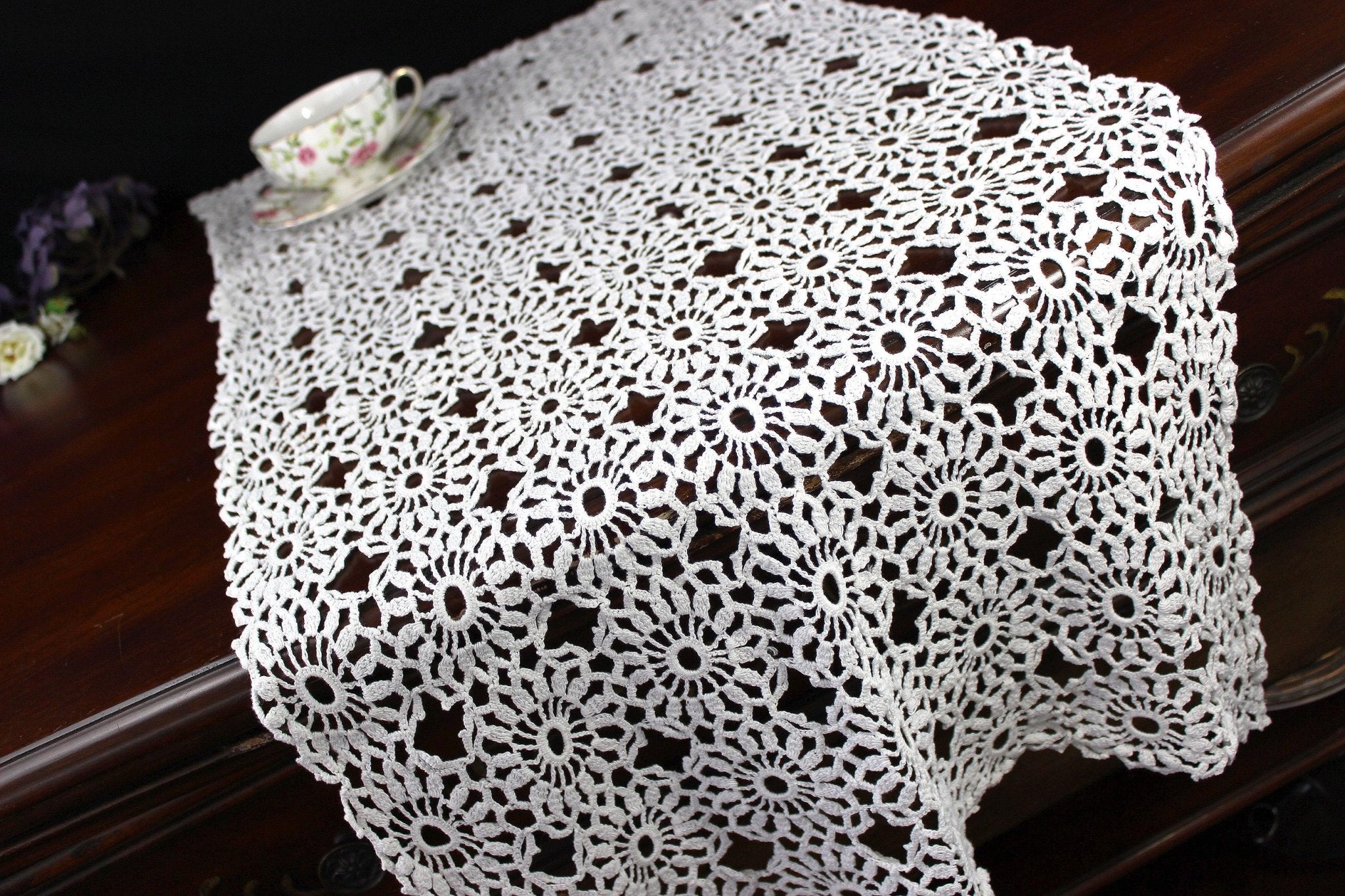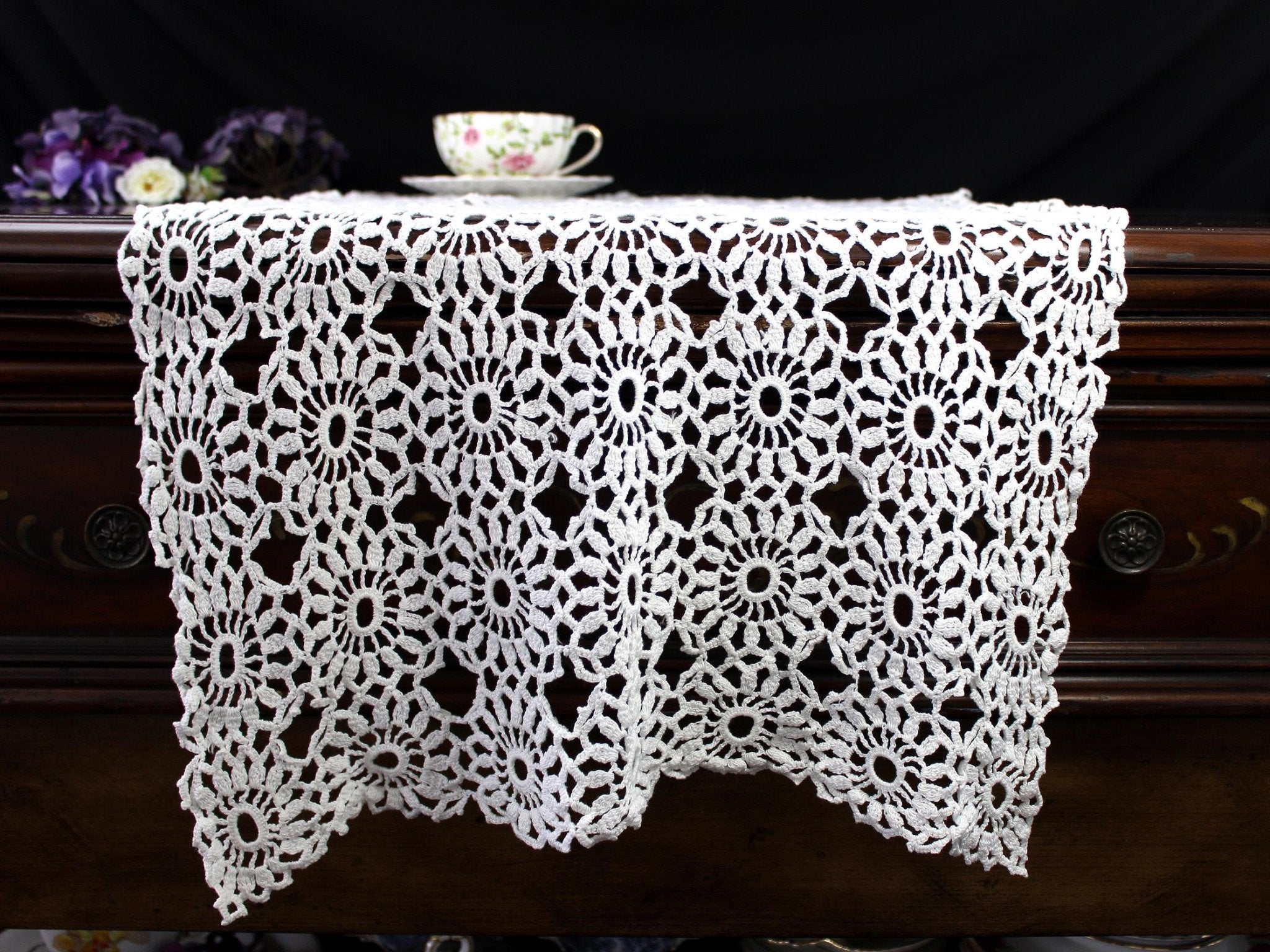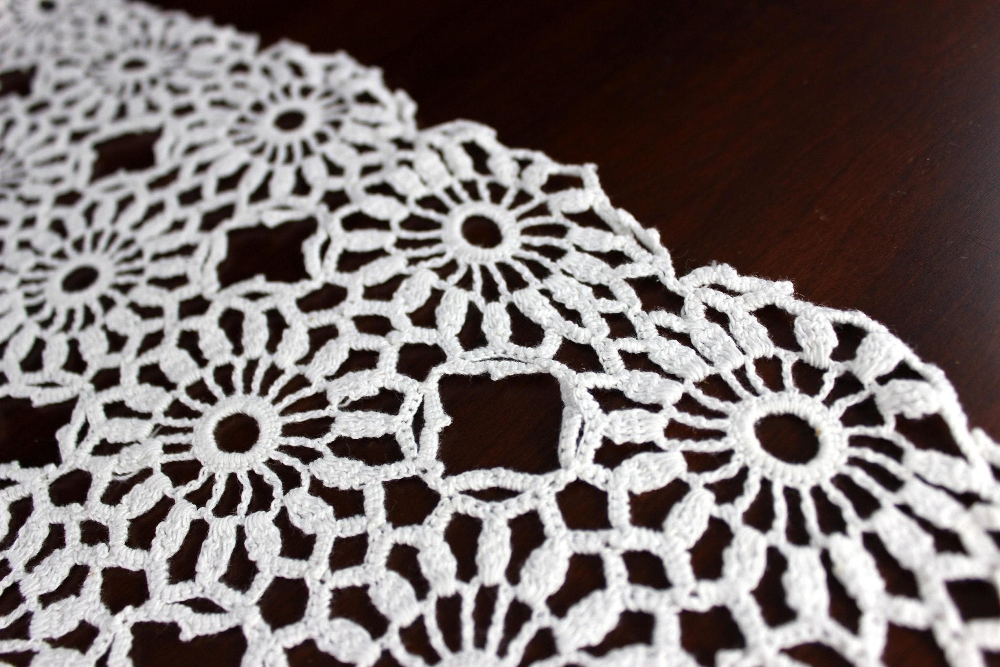 Vintage Crocheted Runner in White, Medium Weight Thread. Measures 18" / 36"